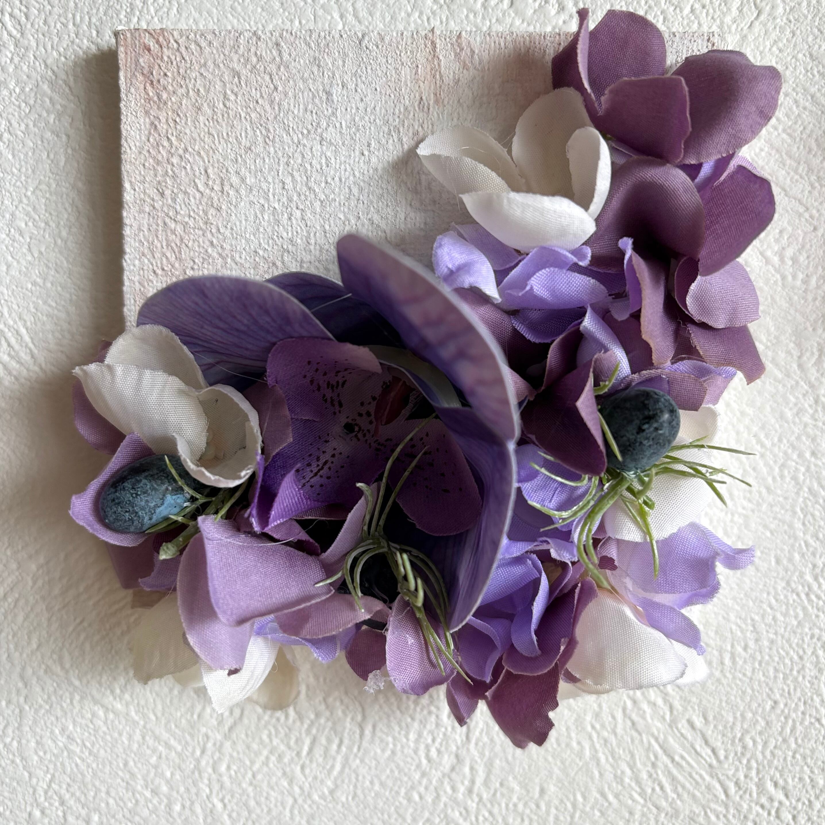 ・素材:アクリル絵の具/テクスチャーメディウム/造花(高品質アーティフィシャルフラワー)