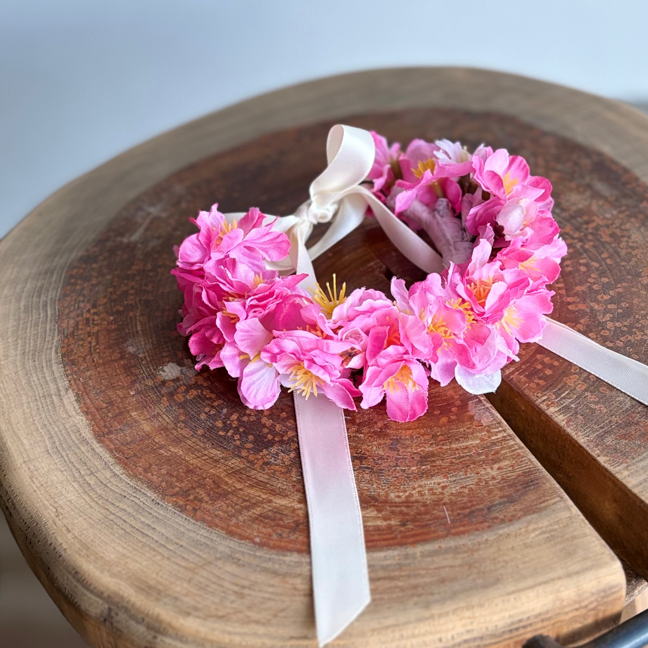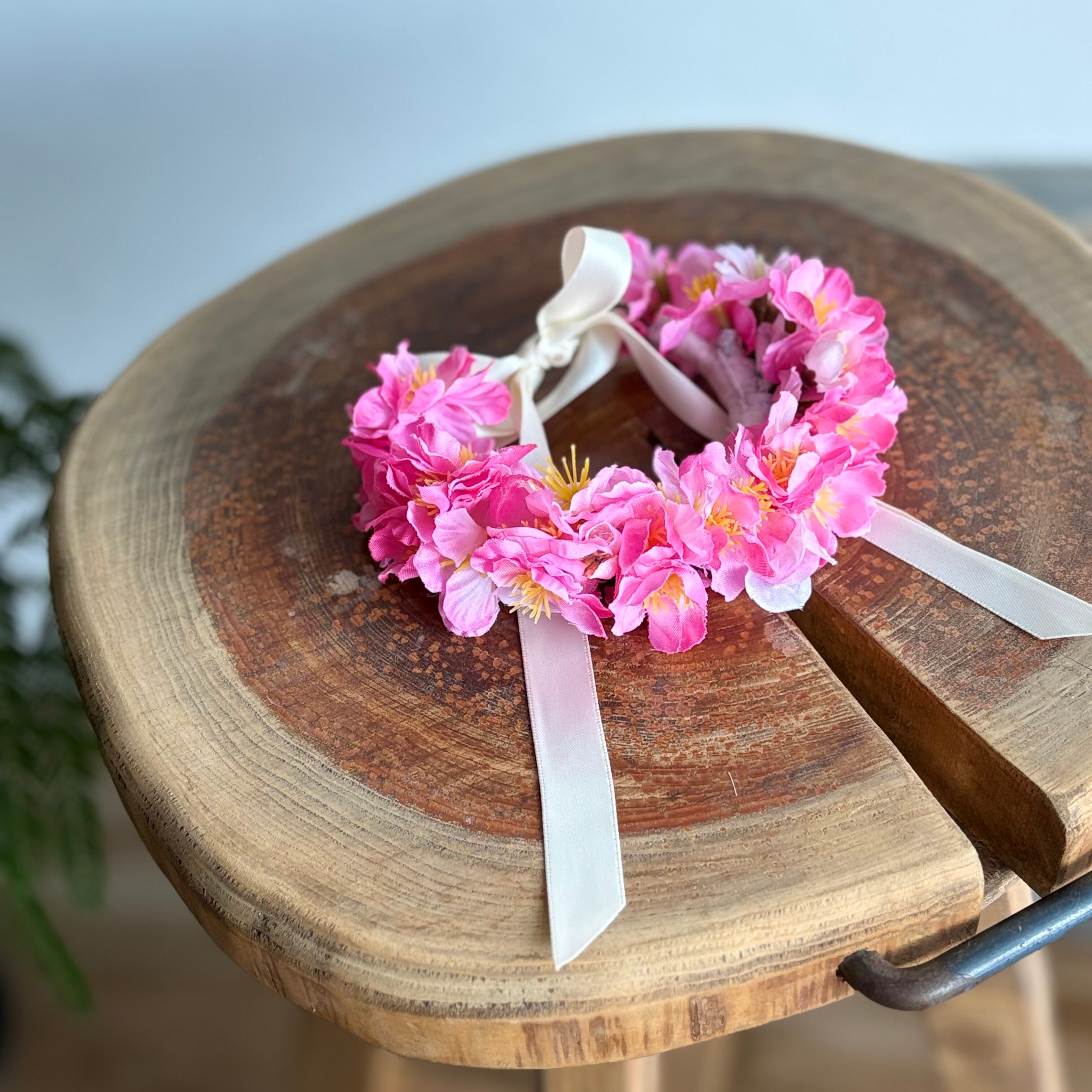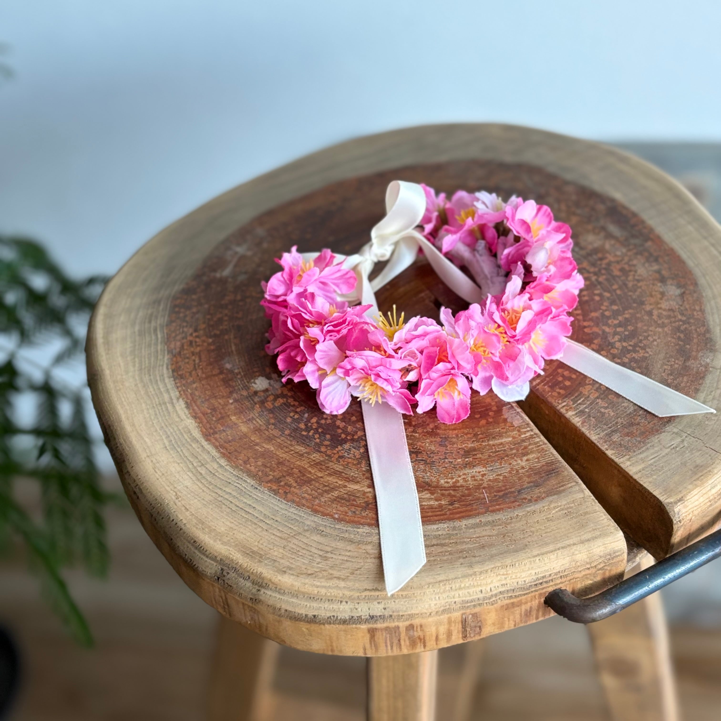 土台はワイヤー、コードストッパーを使っているためお花の角度、わんちゃんのお顔周りのサイズに合わせてご利用ください